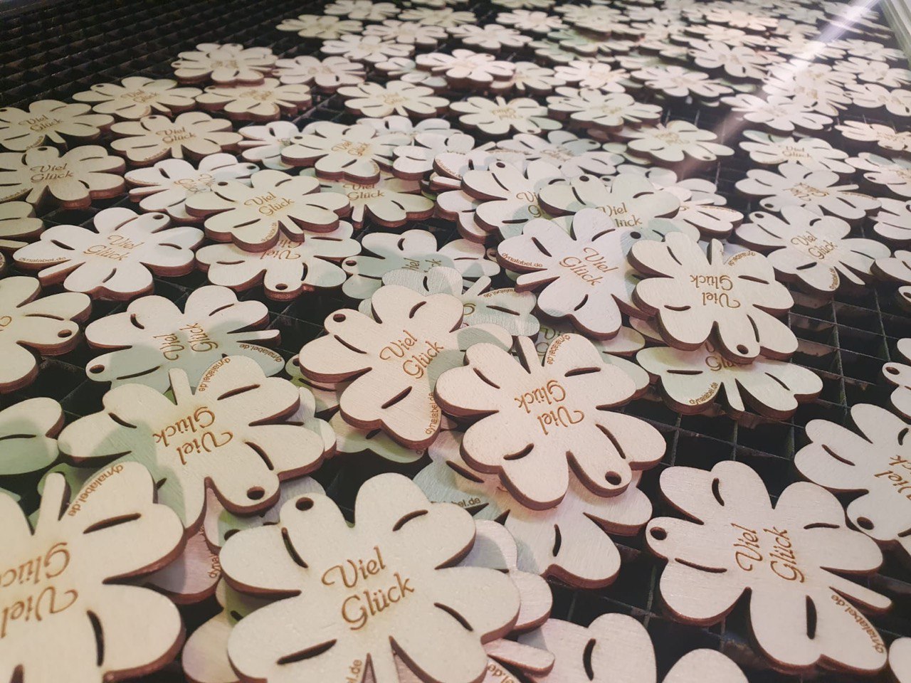 Außer Glas können div. Materialien auch in Formen gelasert werden.