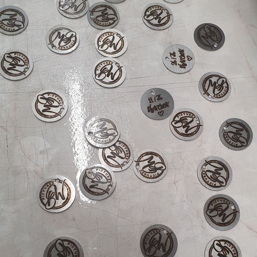Durch einen Fräser wird Material von der Oberfläche eines Objektes abgetragen. Bei einer entsprechenden Frästiefe kann je nach Objekt die Gravur im Anschluss farbig ausgelegt* werden.